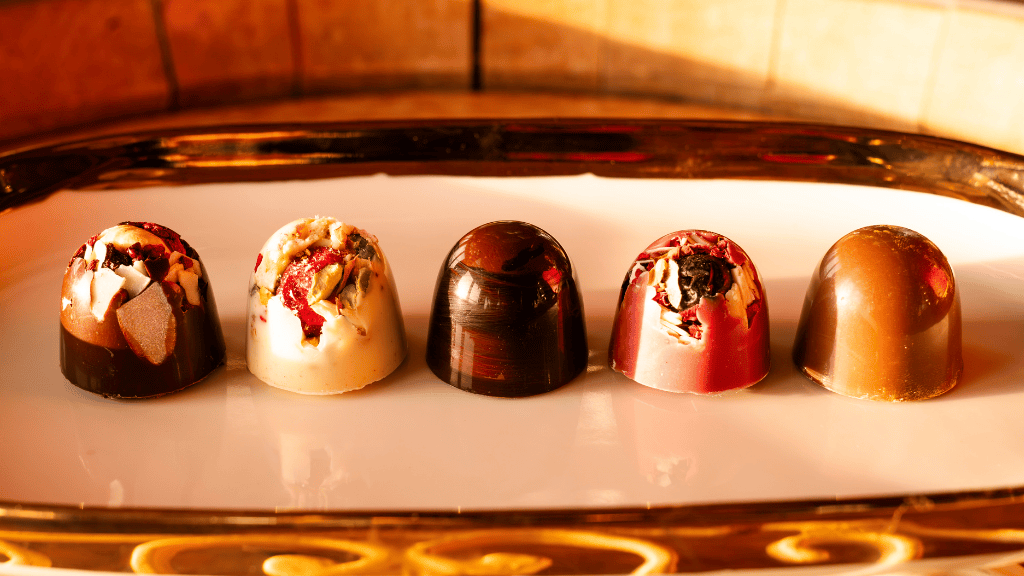 Nasze czekolady i praliny mają w sobie coś, co sprawia, że trudno rozstać się z ich smakiem. Wielu gości chce zatrzymać ten moment na dłużej, dlatego przygotowujemy zestawy, które pozwalają cieszyć się nimi także po zakończeniu wizyty. Wystarczy zapytać kelnera o dostępne kompozycje, aby odkryć słodycze, które mogą towarzyszyć Ci w drodze powrotnej albo stać się drobnym upominkiem dla kogoś, kto doceni rzemieślniczą jakość. Zabierz ze sobą smak, który opowiada własną historię!